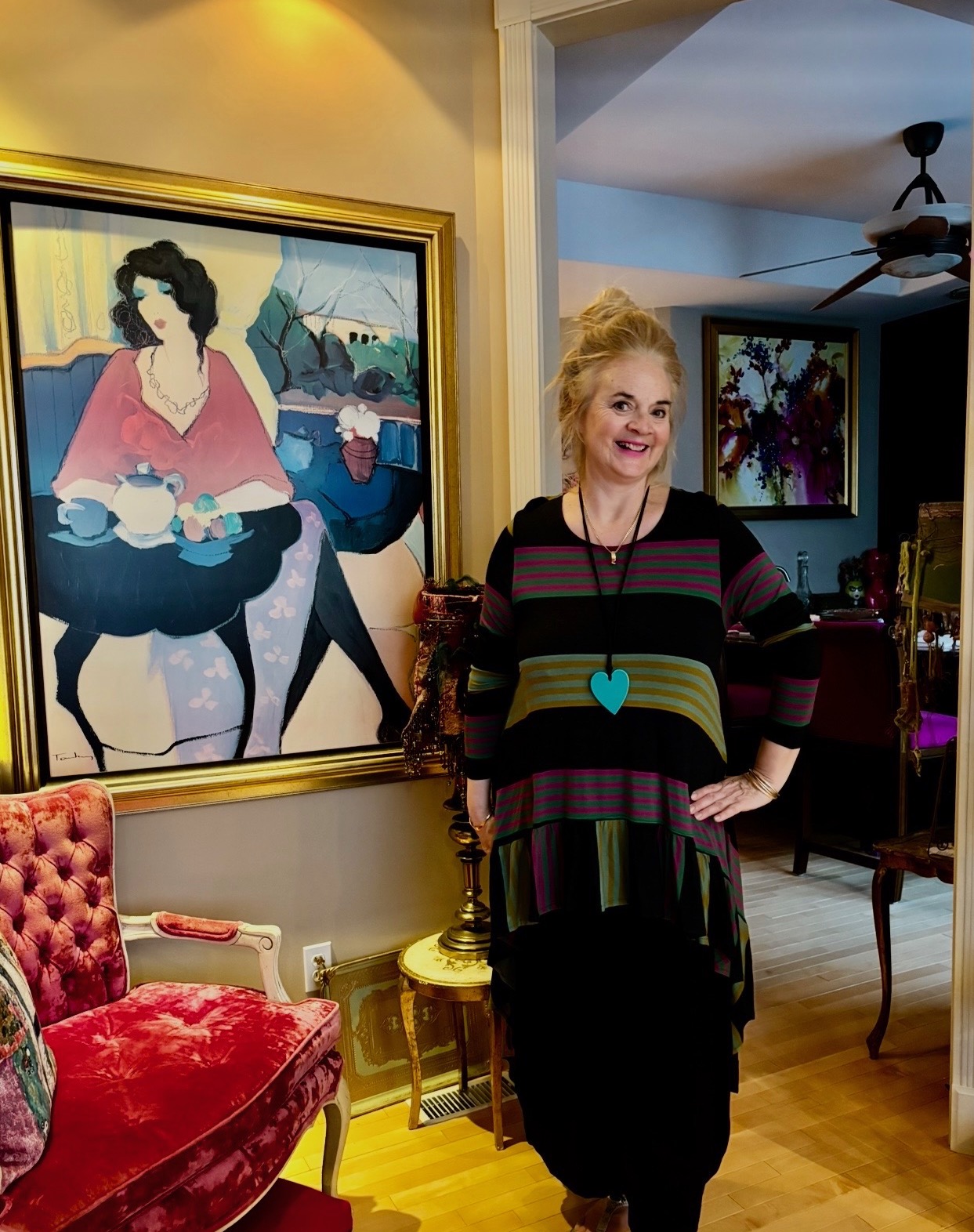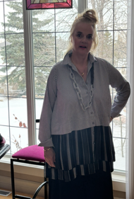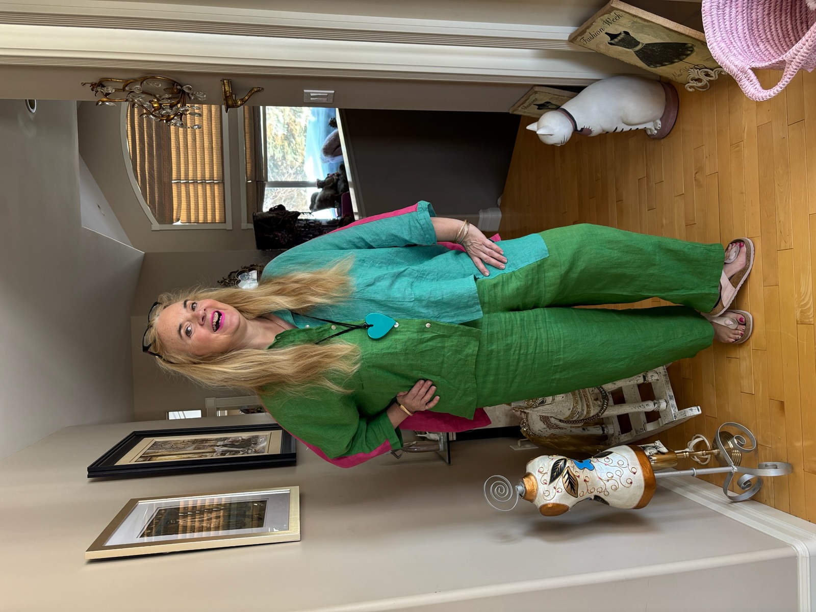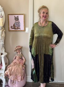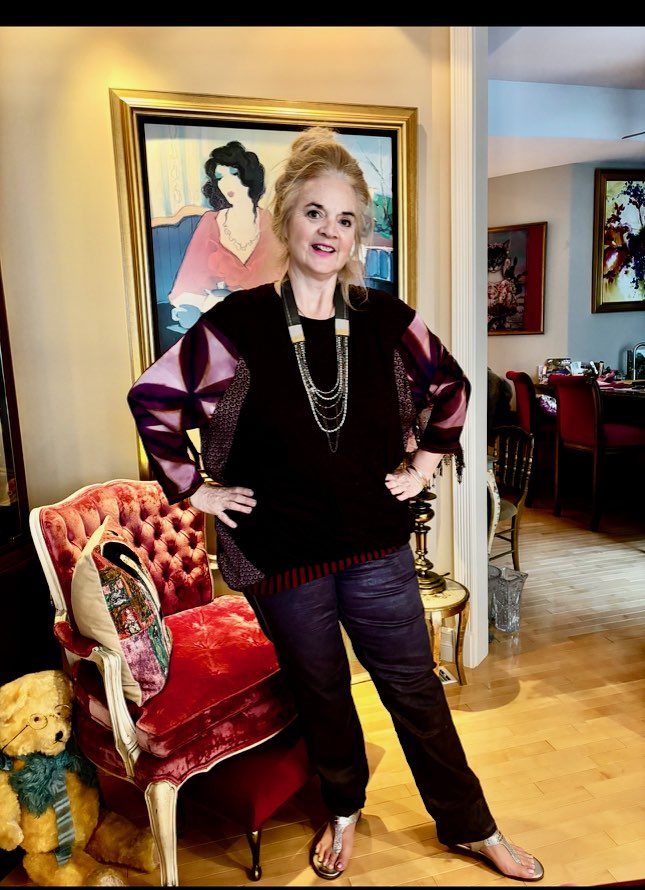 Now in my 60’s, I would describe my style as artistically elegant. I push the envelope in a big way and do not follow trends. I know what suits my body now and stay away from anything that clings.