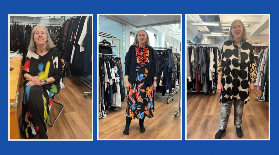 Here I am at a holiday party in Tucson in my Alembika dress, bag, and scarf. I always feel joyful when I wear Alembika. Susan …