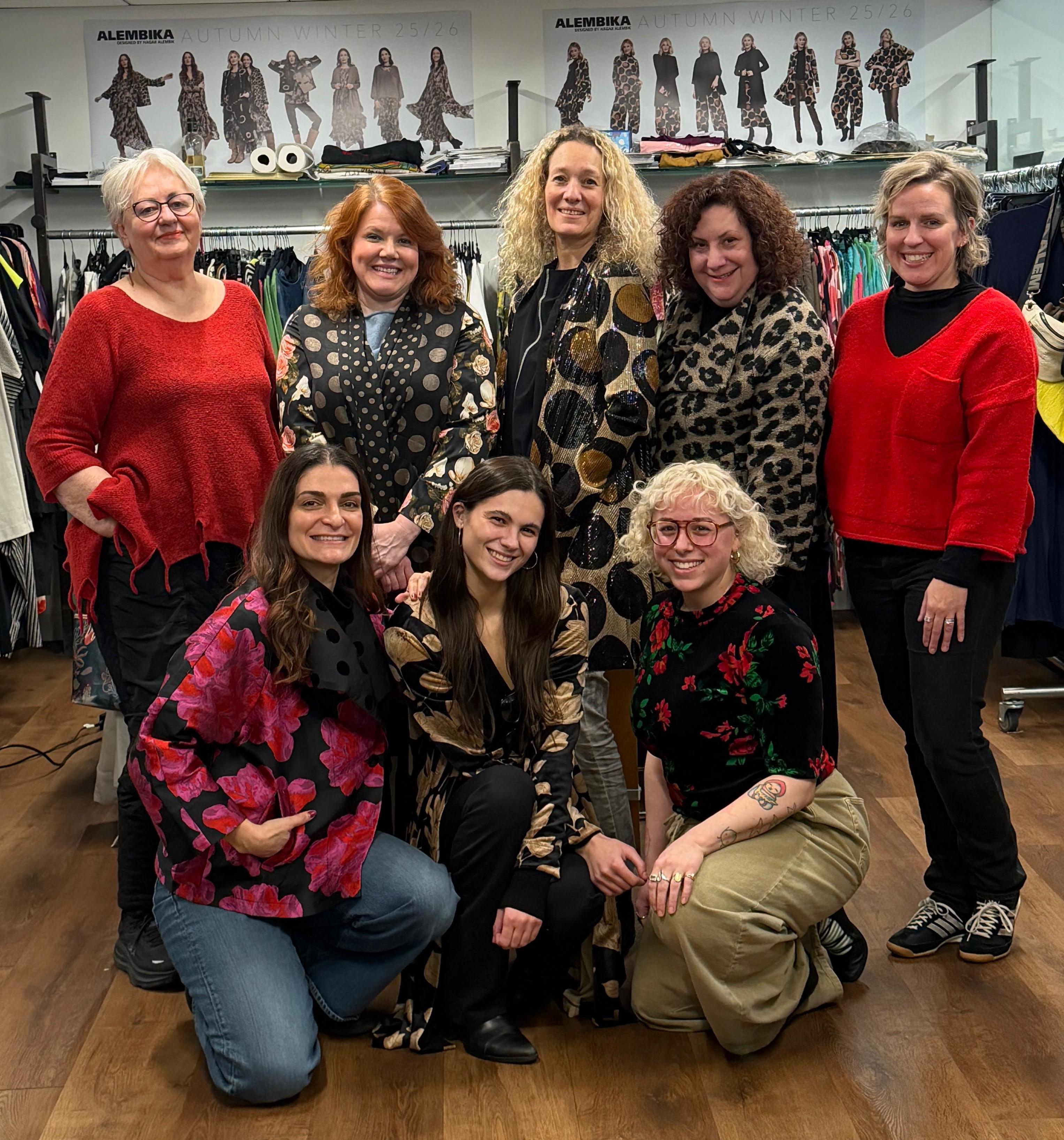 Photo and outfits: Anca in Urban Strapped Pants, Alin in Spritz Duster, Yael in Zsa Zsa Sequin Jacket, Gennifer in Wildcard Cozy Jacket, Taryn in Basis Pullover Sweater, Fatima in Cherie Cocktail Jacket, Lola in Velvet Smoking Jacket and Kira in Aria Velvet Mockneck Tee.
