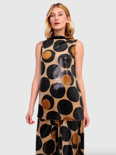 Then there are the sequins—playful, radiant, and utterly captivating. Alembika’s take on sparkle is chic, not showy. Think glistening tops that light up a room when paired with elegant trousers, or a sequined skirt that brings festive energy to any evening event or gala outfit.