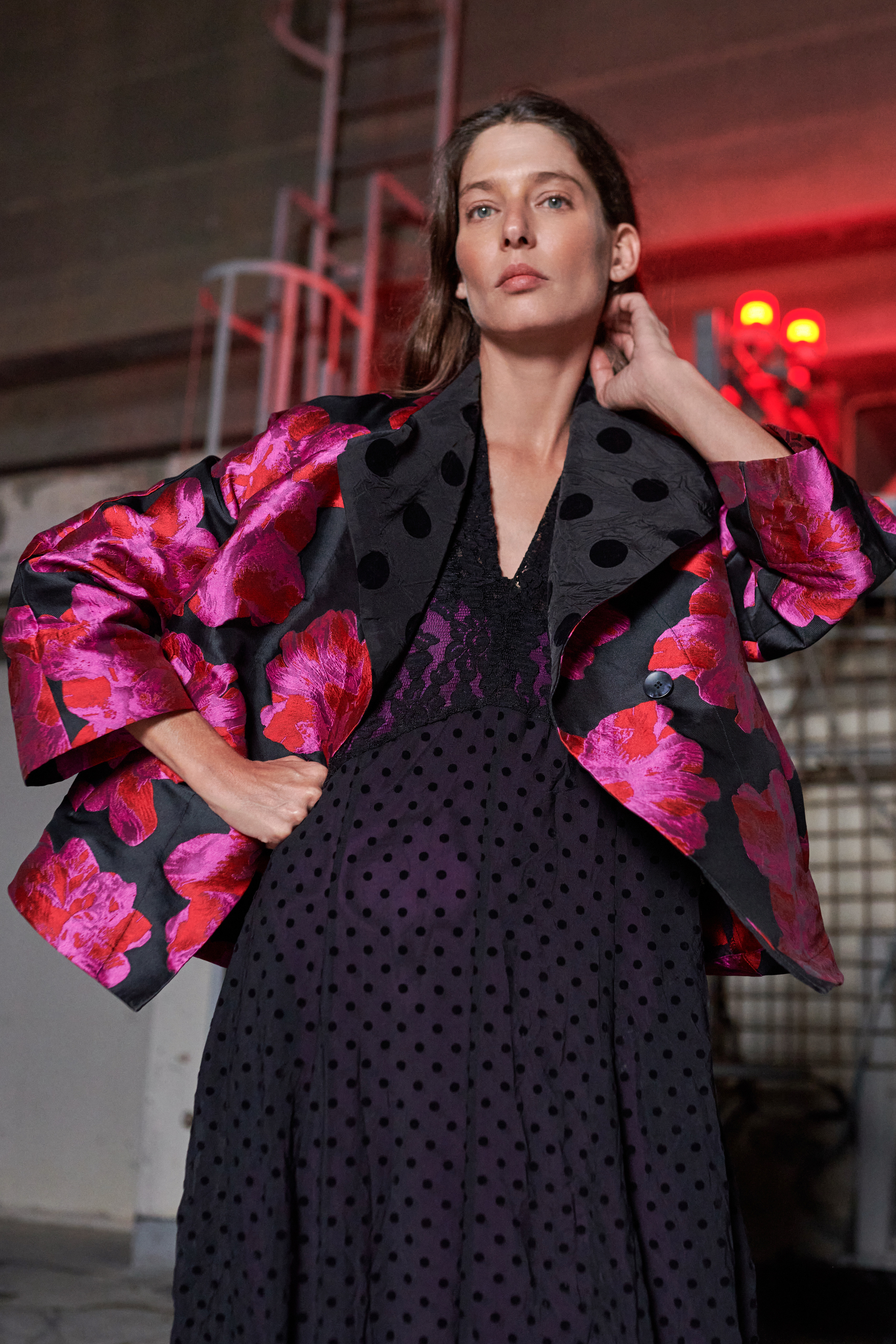Inviting bright accent colors like fuchsia, cherry bring playful energy to seasonal outfits.
