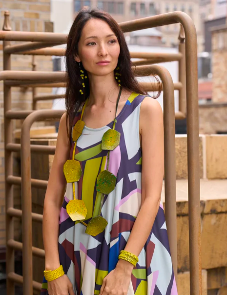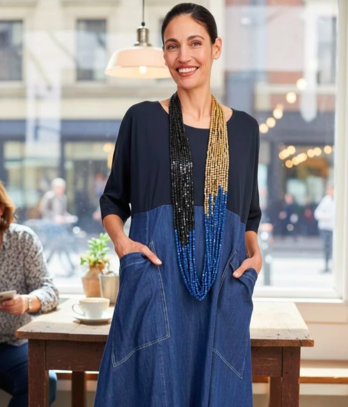 Pairing Jianhui sustainable jewelry with Alembika’s signature apparel creates looks that are fresh, unexpected, and deeply personal. Think effortlessly chic neutrals elevated with luminous, handcrafted earrings—or flowing tunics paired with bold, tactile necklaces that become conversation starters wherever you go. This synergy between design and sustainability makes every outfit an expression of conscious creativity.