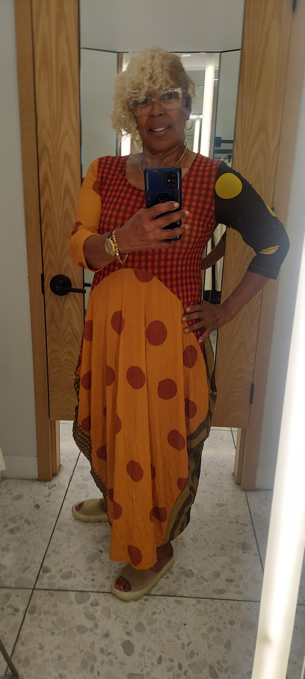LEFT: A sunny yellow Bahama Tee and lounge pants from Guest Designer Ozai N Ku. This outfit is a standout, bringing lightness and cheer to any day.