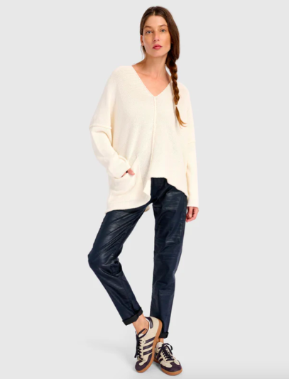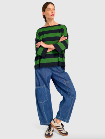 Sweater: Twiggy Sweater in Clover/Navy paired with Papaya Relaxed Pants, Denim is perfect for a casual weekend or every day activities. Shop Sweaters & Cardigans and Forever Iconic: Jeans & Sweaters for more looks like this.
