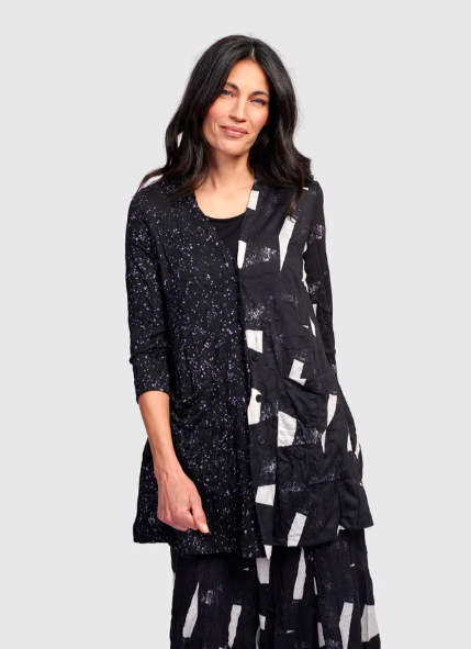 Tekbika After Hours Jacket (left), Gemini Cardigan (center), Essentials (right).