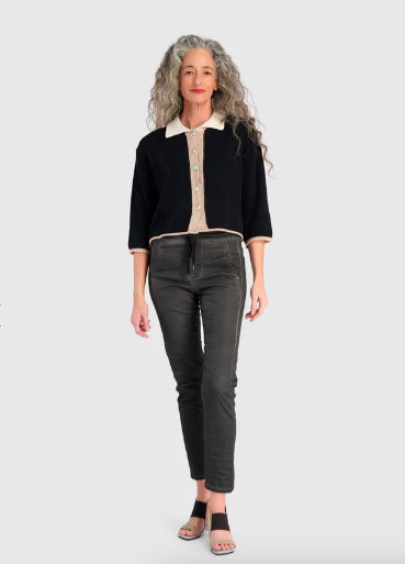We love the Coco Cardigan in Black. This cropped cotton-blend cardigan brings softness and simplicity to everyday layering. It can be paired with Iconic Stretch Jeans or any comfy pants from Polished & Preppy.