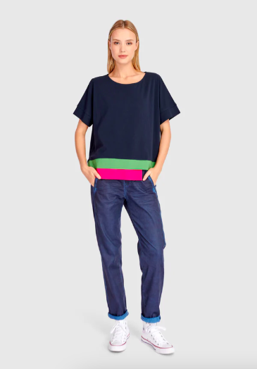 We love the Sorbet Tee paired with Denim Iconic Stretch Jeans or Cabana Wide Leg Pants.