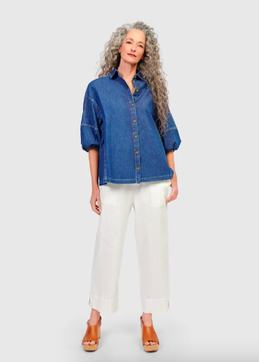 We love the Twill Pants (available in 3 colors and in Papaya, Bahama and Capri styles) with the Myles Popover Shirt or the Simply Slouchy Cardigan (available in Coral Red, Green, Turquoise or Yellow ) for morning errands, drop offs and meet ups.