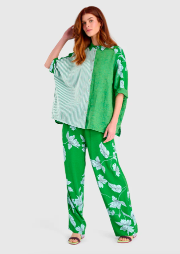 Inspiration for mix-and-match outfits with pieces from the Spring Colors Collection. Left: Oasis Blouse and Snake Iconic Stretch Jeans. Center: Oasis Blouse with Reef Straight Pants. Right: Reef Straight Pants with Terrace Camp Shirt.