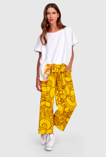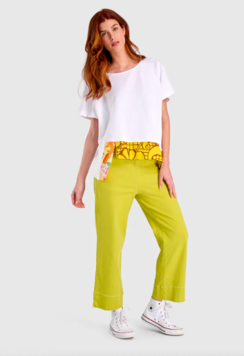 Soft fabrics and cheerful colors set the tone for confident spring layering, making mornings feel energized from the moment you get dressed. Below is the Yuzu Tee paired with different pants from the Spring Colors Collection (Left: Bold Barrel Capri, Center: Bahama Easy Pants, Right: Sunlace Cotton Pants).