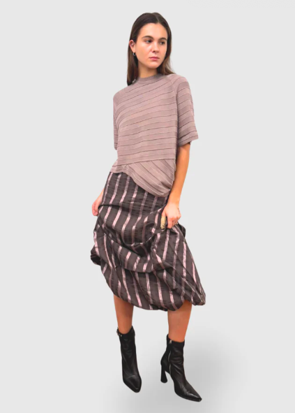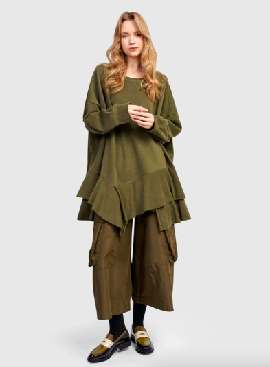 Embrace effortless style with Guest Designer: Ozai N Ku’s Moondust Gathered Skirt paired with a soft, textured sweater such the Ozai N Ku Pleiades Reversible Sweater or Ozai N Ku Quartz Cropped Sweater. For those brisk evening walks home, an oversized Alembika coat such as Urban Tash Long Coat, Khaki (also in Honey) will keep you comfortable and stylish.