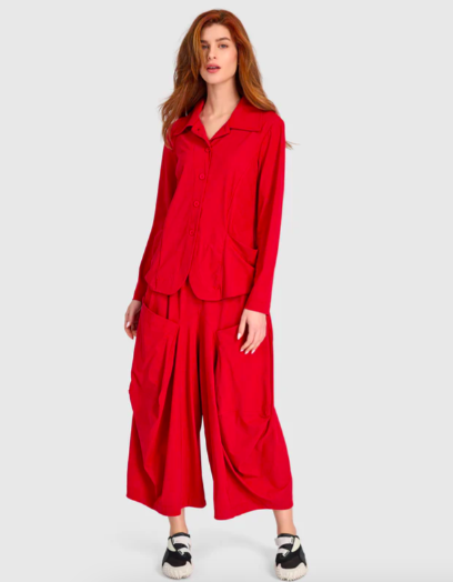 Striking colors and patterns from this new collection make dressing up fun and easy. I am loving the Essential Tekbika Blazer and Harem Pocket Pants in Red. With its clean shoulder and slight A-line line, this red jacket — made in a stretch techno fabric that makes it comfortable through the day — offers a tailored look but a comfortable fit. Pair it with the cropped style harem pants with elastic waist that keeps the outfit simple yet stylish.