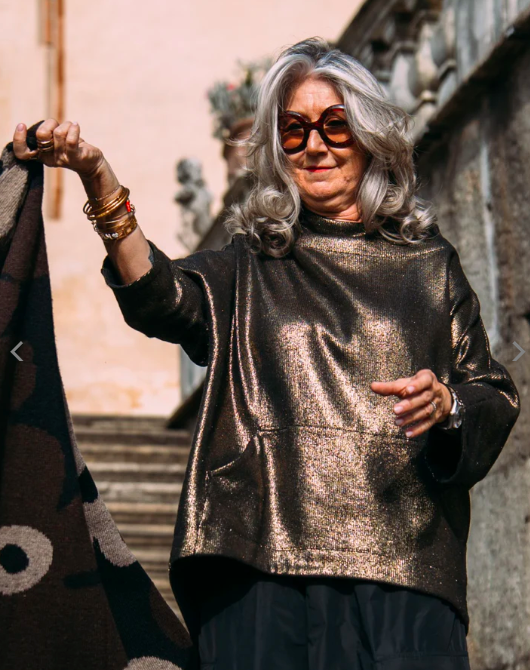 “Look for relaxed silhouettes with personality. A soft cocoon shape or mesh tunic feels dressy, but never fussy.”