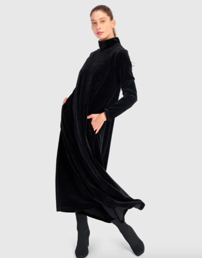 Absolutely. Alembika designs with real women in mind, offering plus-size winter dresses (like the Sunset Strip Cocoon Dress in Magenta or the Everyday Velvet Babydoll Dress in Khaki or in Black), and winter fashion for women over 50 that celebrates individuality and movement.