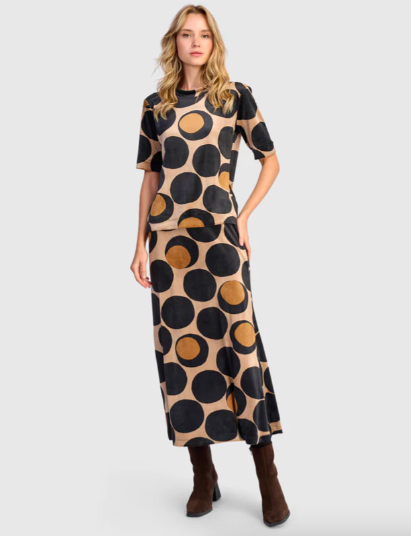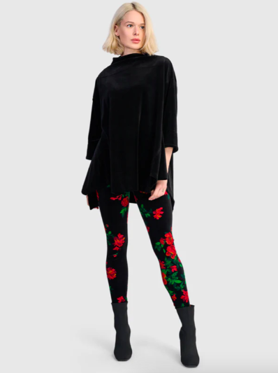 Think black and white winter outfits with a touch of drama — or jewel tones like garnet, sapphire, and emerald for instant sophistication. Pair velvet tops with Alembika’s signature winter tunics or swing dresses for dynamic contrast. All styles are from Alembika’s After Dark: Shine After Sunset Collection.