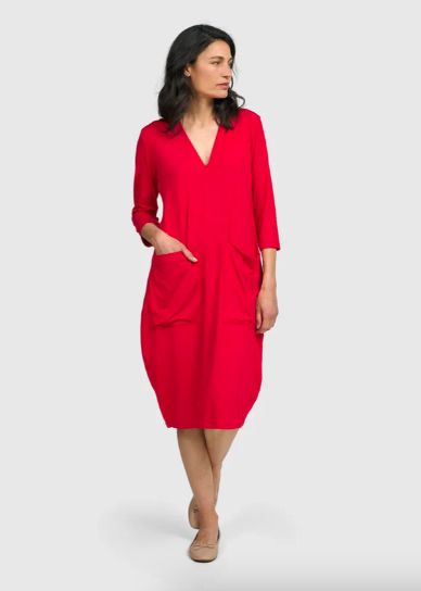 Best-selling, classic, lightweight and breathable essentials. Designed with ultimate comfort, softness and stretch in mind. Effortlessly flattering fits in timeless hues for women from Plus to Petite. Seen here are Alembika’s Essential V-Neck and Flow Pants, Essential Cargo Dress and Essential Cocoon Dress. Also available in many other colors.