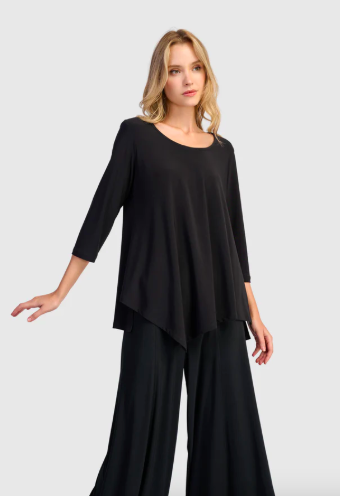Expert insight: “When I travel, I pack matte jersey first—it never wrinkles, and it always looks like I tried harder than I did,” says Yael Edelist a NYC-based wardrobe consultant and President of Alembika USA. Pictured here: Essential Slinky V-neck Top in Black (left), Essential Slinky Cropped Cardigan (center), Essential Slinky Point Hem Top (right).