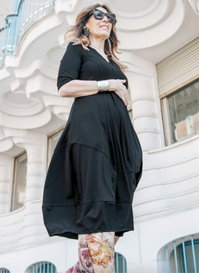 Wendi: “Forgiving fabrics and smart construction are your best friends. Elastic waists, architectural shapes, and soft knits create ease without losing style.”