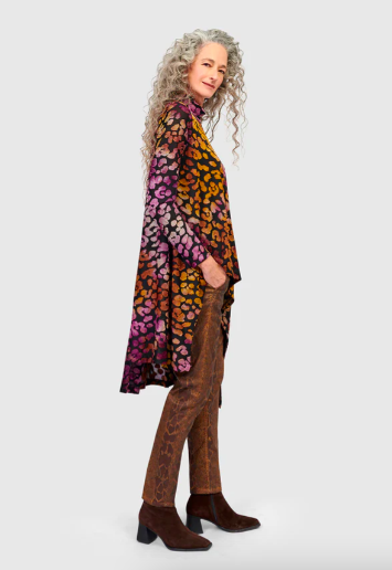 Try: A print top or tunic in a color that makes you glow. Seen here: Tempest Hi-Lo Tunic Top (left), Starling Sweater (center), Ozai N Ku Dione Cinch Reversible Vest (right).