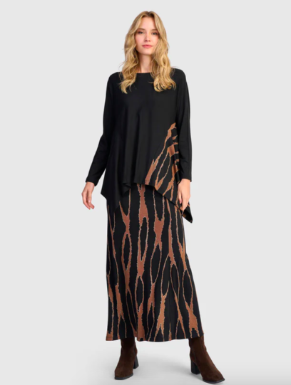 You don’t have to wear formalwear to look stylish—well-chosen basics can do the work for you. Look for high-quality, comfortable essentials with unique details. Think flowy tunics, soft jersey dresses, and relaxed-fit trousers that drape beautifully. Alembika’s signature punto pants and asymmetrical tops add flair without fuss, making them perfect for an effortlessly chic look.