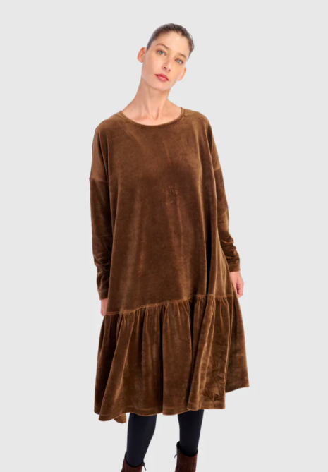 Everyday Velvet Babydoll Dress seen here in Khaki, also available in Black.